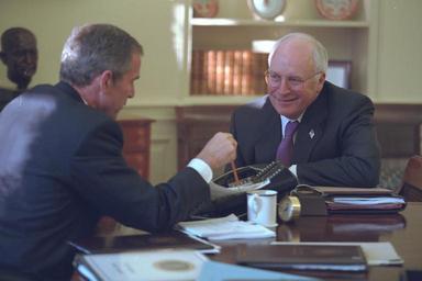 View Original:President_Bush_and_Vice_President_Cheney_in_the_Oval_Office.jpg (3072x2048)