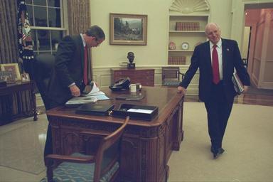 View Original:President_Bush_and_Vice_President_Cheney_in_the_Oval_Office.jpg (3072x2048)