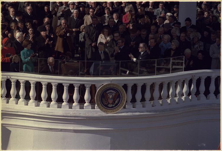 Keywords: President Carter's Inauguration - NARA - 173343.tif Scope and content General notes 173343 Local identifier President 1977-1981 Carter White House Staff Photographers 01/20/1977 - 01/20/1981 Jimmy Carter Library NLJC 441 Freedom Parkway Atlanta GA 30307-1498 1977-01-20 Record group Collection JC-WHSP Carter White House Photographs Collection 01/20/1977 - 01/22/1981 Record group ARC 1120 Carter White House Photographs Presidential compiled 01/20/1977 - 01/22/1981 Series ARC 173341 File unit Inaugural Events 1977 01/20/1977 - 01/20/1977 File unit ARC 173342 Variant control numbers NAIL Control Number NLC-WHSP-C-00002-27 yes Other versions NARA-cooperation PD-USGov Jimmy Carter 1977 presidential inauguration |