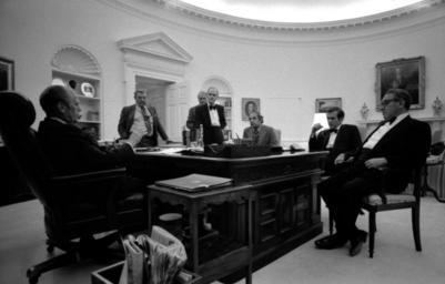 Keywords: President Ford during Mayaguez incident.jpg President Ford and senior staff members stay late into the night to learn of the recapture of the S S Mayaguez and its crew Left to right President Ford Counsellor Robert T Hartmann Counsellor John Marsh Deputy Assistant for National Security Affairs Brent Scowcroft Press Secretary Ron Nessen Chief of Staff Donald H Rumsfeld Secretary of State Henry A Kissinger Gerald Ford et ses collègues discutant de la libération de l'équipage du S S Mayaguez de gauche à droite sur la photo Ford Robert T Hartmann John Marsh Brent Scowcroft Ron Nessen Donald H Rumsfeld Henry A Kissinger http //www ford utexas edu/images/avproj/pop-ups/A4554-10 html Ford library 1975-05-14 creator David Hume Kennerly PD-USGov Mayaguez incident Gerald Ford in the Oval Office Henry Kissinger Donald Rumsfeld in 1975 Photographs by David Hume Kennerly from 1975 Brent Scowcroft Wilson desk Gerald Ford in 1975 |