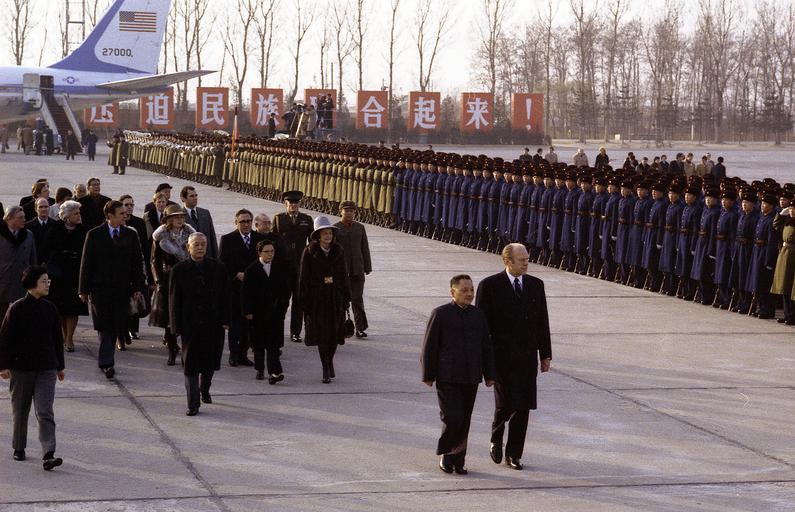 Keywords: President Ford escorted by Deng Xiao Ping - NARA - 7062604.jpg Escorted by Deng Xiao Ping President Gerald Ford inspects the Honor Guard at Peking Capital Airport upon his arrival in China 7062604 Creator David Hume Kennerly Gerald R Ford Presidential Library http //www fordlibrarymuseum gov/avproj/whitehouse-years-03 asp A7630-04A Institution Gerald R Ford Presidential Library 1975-12-01 Gerald R Ford Presidential Library and Museum-cooperation PD-USGov Uploaded with UploadWizard The White House Years media photo kit at the Gerald R Ford Presidential Library 1975 in China Relations of the People's Republic of China and the United States Deng Xiaoping Gerald Ford in 1975 Honour guards Photographs by David Hume Kennerly from 1975 |
