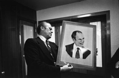 Keywords: President Ford examines a wood portrait - NARA - 7160309.jpg Photograph of President Gerald Ford examining a wood portrait of himself given by Soviet General Secretary Leonid Brezhnev during the Vladivostok Summit Meetings 7160309 Creator David Hume Kennerly Gerald R Ford Presidential Library http //www fordlibrarymuseum gov/library/exhibits/vladivostok/vbreaks asp A2090-19 Institution Gerald R Ford Presidential Library 1974-11-23 Gerald R Ford Presidential Library and Museum-cooperation PD-USGov Uploaded with UploadWizard 1974 State Visit to the USSR photo kit at the Gerald R Ford Presidential Library Vladivostok Summit Meeting on Arms Control Gerald Ford in 1974 People with paintings |