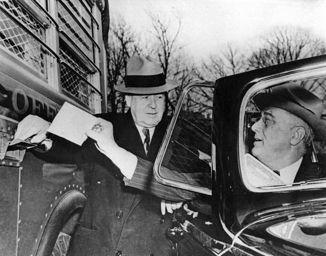 | Keywords: smithsonian institution smithsonianinstitution fdr bus usps highway post office highwaypostoffice highway post office bus highwaypostofficebus franklin d. roosevelt franklindroosevelt president franklin d. roosevelt presidentfranklindroosevelt roosevelt automobile conversation black and white blackandwhite president roosevelt presidentroosevelt photo journalism photojournalism flash photogr flashphotogr national postal museum nationalpostalmuseum mail across the commons mailacrossthecommons united states presidents unitedstatespresidents blackandwhite monochrome black and white Description: President Roosevelt is shown depositing a letter into the side of a Highway Post Office Bus. By the 1930s, a significant decline in railroad passenger traffic had caused a subsequent decline in the use of railway trains. To fill the void, the postal service transferred some en route distribution from trains to highway buses. This is the first Highway Post Office bus and is the collection of the National Postal Museum. Creator/Photographer: Unidentified photographer Medium: Black and white photographic print Geography: USA Date: 1941 Collection: U.S. Highway Post Office Repository: National Postal Museum Accession number: A.2006-78 Persistent URL: arago.si.edu/index.asp?con=2&cmd=1&id=194330 View more collections from the Smithsonian Institution. Description: President Roosevelt is shown depositing a letter into the side of a Highway Post Office Bus. By the 1930s, a significant decline in railroad passenger traffic had caused a subsequent decline in the use of railway trains. To fill the void, the postal service transferred some en route distribution from trains to highway buses. This is the first Highway Post Office bus and is the collection of the National Postal Museum. Creator/Photographer: Unidentified photographer Medium: Black and white photographic print Geography: USA Date: 1941 Collection: U.S. Highway Post Office Repository: National Postal Museum Accession number: A.2006-78 Persistent URL: arago.si.edu/index.asp?con=2&cmd=1&id=194330 View more collections from the Smithsonian Institution. |
