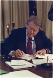 Keywords: President Jimmy Carter - NARA - 173490.tif Scope and content General notes 173490 Local identifier President 1977-1981 Carter White House Staff Photographers 01/20/1977 - 01/20/1981 Jimmy Carter Library NLJC 441 Freedom Parkway Atlanta GA 30307-1498 1977-01-26 Record group Collection JC-WHSP Carter White House Photographs Collection 01/20/1977 - 01/22/1981 Record group ARC 1120 Carter White House Photographs Presidential compiled 01/20/1977 - 01/22/1981 Series ARC 173341 File unit President Carter Signing the Energy Message 01/26/1977 - 01/26/1977 File unit ARC 173489 Variant control numbers NAIL Control Number NLC-WHSP-C-00142-7A yes Other versions NARA-cooperation PD-USGov Jimmy Carter |