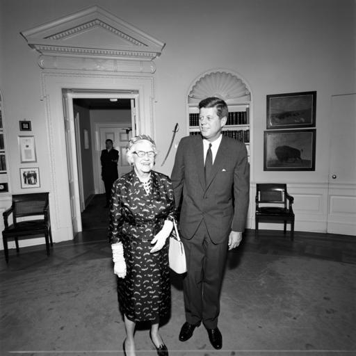 | Keywords: u.s. national archives usnationalarchives jfk presidential library jfkpresidentiallibrary white house whitehouse jfk john kennedy blackandwhite people monochrome black and white Original Caption: President John F. Kennedy with Newspaper Publisher We are looking for your help in identifying unknown people in our White House Photographs collection. If you have any information about this photograph, please post a comment, including any relevant sources, for the catalogers at the John F. Kennedy Presidential Library. Thank you! Local Identifier: JFKWHP-ST-235-3-62 Created By: President (1961-1963 : Kennedy). Office of the Naval Aide to the President. (1961 - 1963) From: President (1963-1969 : Johnson). White House Photograph Office. (1963 - 1969) Contact: John F. Kennedy Library (LP-JFK), Columbia Point Boston, MA 02125-3398 Phone: 617-514-1600 Fax: 617-514-1652 Email: kennedy.library@nara.gov Production Dates: 5/28/1962 Scope and Content Note: In this photograph, President John F. Kennedy stands with an unidentified woman during a visit with women newspaper publishers. Special Assistant to the President, Kenneth P. O’Donnell, stands in background (through doorway), Oval Office, White House, Washington, D.C. Persistent URL: JFK Library URL: www.jfklibrary.org/Asset-Viewer/Archives/JFKWHP-ST-235-3-... Access Restrictions: Unrestricted Use Restrictions: Unrestricted Original Caption: President John F. Kennedy with Newspaper Publisher We are looking for your help in identifying unknown people in our White House Photographs collection. If you have any information about this photograph, please post a comment, including any relevant sources, for the catalogers at the John F. Kennedy Presidential Library. Thank you! Local Identifier: JFKWHP-ST-235-3-62 Created By: President (1961-1963 : Kennedy). Office of the Naval Aide to the President. (1961 - 1963) From: President (1963-1969 : Johnson). White House Photograph Office. (1963 - 1969) Contact: John F. Kennedy Library (LP-JFK), Columbia Point Boston, MA 02125-3398 Phone: 617-514-1600 Fax: 617-514-1652 Email: kennedy.library@nara.gov Production Dates: 5/28/1962 Scope and Content Note: In this photograph, President John F. Kennedy stands with an unidentified woman during a visit with women newspaper publishers. Special Assistant to the President, Kenneth P. O’Donnell, stands in background (through doorway), Oval Office, White House, Washington, D.C. Persistent URL: JFK Library URL: www.jfklibrary.org/Asset-Viewer/Archives/JFKWHP-ST-235-3-... Access Restrictions: Unrestricted Use Restrictions: Unrestricted |