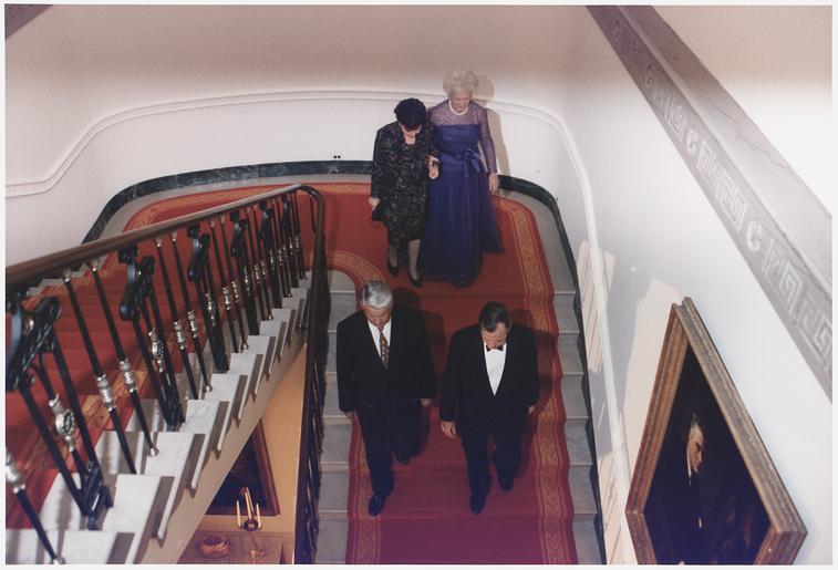 | Keywords: President and Mrs. Bush host a State Dinner for Russian President and Mrs. Boris Yeltsin at the White House - NARA - 186452.tif Scope and content General notes 186452 Local identifier President 1989-1993 Bush Photograph Office 1989 - 1993 NARA-Author Valdez David 1949- Photographer 4097323 <br /> George Bush Library NLGB 1000 George Bush Drive West College Station TX 77845 1992-06-16 Record group Collection GB-WHPO Records of the White House Photograph Office 01/20/1989 - 01/20/1993 Record group ARC 1082 George H W Bush Presidential Photographs compiled 01/20/1989 - 01/20/1993 Series ARC 186364 File unit File unit ARC Variant control numbers NAIL Control Number NLB-WHPC-A-P32704 08 yes Other versions NARA-cooperation PD-USGov Boris Yeltsin |