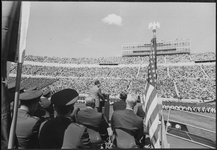 Keywords: President Nixon disembarks from Air Force One on Midway Island - NARA - 194291.tif Scope and content Subject Trip to Pacific - 1969 General notes 194291 Local identifier NLRN-WHPO-C1232-11 General Services Administration National Archives and Records Service Office of Presidential Libraries Office of Presidential Papers 01/20/1969 - ca 12/1974 Most Recent <br /> President 1969-1974 Nixon White House Photo Office 1969 - 1974 Most Recent NARA-Author Atkins Oliver F 1916-1977 Photographer 8451334 <br /> Richard Nixon Library NLRN 18001 Yorba Linda Boulevard Yorba Linda CA 92886 1969-07-07 Record group Collection RN-WHPO White House Photo Office Collection Nixon Administration 01/20/1969 - 08/09/1974 Record group ARC 1179 Nixon White House Photographs compiled 01/20/1969 - 08/09/1974 documenting the period 08/08/1968 - 08/09/1974 Series ARC 194277 File unit File unit ARC Variant control numbers NAIL Control Number NLNP-WHPO-MPF-C1232 11 yes Other versions NARA-cooperation PD-USGov Photographs by Ollie Atkins |