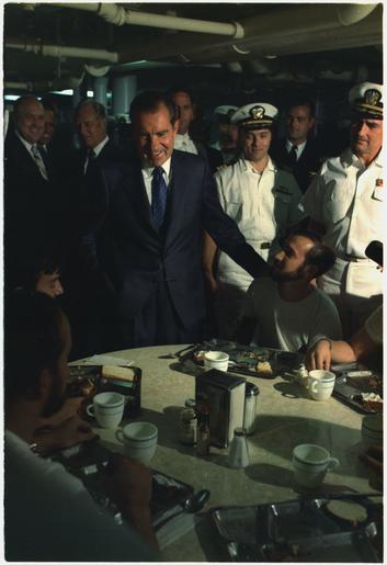 Keywords: President Nixon meets with sailors aboard the U.S.S. Saratoga off the coast of Naples, Italy - NARA - 194330.tif Scope and content Pictured President Nixon Subject European Trip- 1970 General notes 194330 Local identifier NLRN-WHPO-C4580-28A General Services Administration National Archives and Records Service Office of Presidential Libraries Office of Presidential Papers 01/20/1969 - ca 12/1974 Most Recent <br /> President 1969-1974 Nixon White House Photo Office 1969 - 1974 Most Recent NARA-Author Atkins Oliver F 1916-1977 Photographer 8451334 <br /> Richard Nixon Library NLRN 18001 Yorba Linda Boulevard Yorba Linda CA 92886 1970-09-29 Record group Collection RN-WHPO White House Photo Office Collection Nixon Administration 01/20/1969 - 08/09/1974 Record group ARC 1179 Nixon White House Photographs compiled 01/20/1969 - 08/09/1974 documenting the period 08/08/1968 - 08/09/1974 Series ARC 194277 File unit File unit ARC Variant control numbers NAIL Control Number NLNP-WHPO-MPF-C4580 28A yes Other versions NARA-cooperation PD-USGov Aboard USS Saratoga CV-60 Richard Nixon in 1970 Photographs by Ollie Atkins |