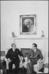 Keywords: President Nixon meets with President of Pakistan Yahya Khan - NARA - 194693.tif Scope and content Pictured Yahya Khan Richard M Nixon Subject Heads of State - Pakistan General notes 194693 Local identifier NLRN-WHPO-4856-04 General Services Administration National Archives and Records Service Office of Presidential Libraries Office of Presidential Papers 01/20/1969 - ca 12/1974 Most Recent <br /> President 1969-1974 Nixon White House Photo Office 1969 - 1974 Most Recent NARA-Author Atkins Oliver F 1916-1977 Photographer 8451334 <br /> Richard Nixon Library NLRN 18001 Yorba Linda Boulevard Yorba Linda CA 92886 1970-10-25 Record group Collection RN-WHPO White House Photo Office Collection Nixon Administration 01/20/1969 - 08/09/1974 Record group ARC 1179 Nixon White House Photographs compiled 01/20/1969 - 08/09/1974 documenting the period 08/08/1968 - 08/09/1974 Series ARC 194277 File unit File unit ARC Variant control numbers NAIL Control Number NLNP-WHPO-MPF-4856 04 yes Other versions NARA-cooperation PD-USGov Photographs by Ollie Atkins |