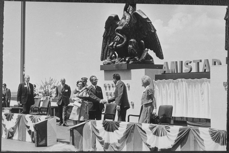 Keywords: President Nixon shaking hands with the President of Mexico - NARA - 194657.tif Scope and content Pictured Mrs Ordaz President Diaz Ordaz President Nixon Mrs Nixon Subject Trip to Mexico - 1969 1970 General notes 194657 Local identifier NLRN-WHPO-1935-10A General Services Administration National Archives and Records Service Office of Presidential Libraries Office of Presidential Papers 01/20/1969 - ca 12/1974 Most Recent <br /> President 1969-1974 Nixon White House Photo Office 1969 - 1974 Most Recent NARA-Author Atkins Oliver F 1916-1977 Photographer 8451334 <br /> Richard Nixon Library NLRN 18001 Yorba Linda Boulevard Yorba Linda CA 92886 1969-09-08 Record group Collection RN-WHPO White House Photo Office Collection Nixon Administration 01/20/1969 - 08/09/1974 Record group ARC 1179 Nixon White House Photographs compiled 01/20/1969 - 08/09/1974 documenting the period 08/08/1968 - 08/09/1974 Series ARC 194277 File unit File unit ARC Variant control numbers NAIL Control Number NLNP-WHPO-MPF-1935 10A yes Other versions NARA-cooperation PD-USGov Photographs by Ollie Atkins |