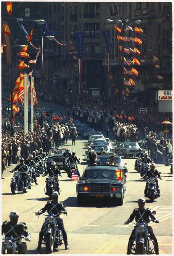 Keywords: President Nixon waves to the crowd during a procession in Madrid, Spain - NARA - 194332.tif Scope and content Pictured President Richard M Nixon in car in the front of the procession Subject European Trip- 1970 General notes 194332 Local identifier NLRN-WHPO-C4639-22A General Services Administration National Archives and Records Service Office of Presidential Libraries Office of Presidential Papers 01/20/1969 - ca 12/1974 Most Recent <br /> President 1969-1974 Nixon White House Photo Office 1969 - 1974 Most Recent NARA-Author Schumaker Byron E ca 1935- Photographer 8451340 <br /> Richard Nixon Library NLRN 18001 Yorba Linda Boulevard Yorba Linda CA 92886 1970-10-02 Record group Collection RN-WHPO White House Photo Office Collection Nixon Administration 01/20/1969 - 08/09/1974 Record group ARC 1179 Nixon White House Photographs compiled 01/20/1969 - 08/09/1974 documenting the period 08/08/1968 - 08/09/1974 Series ARC 194277 File unit File unit ARC Variant control numbers NAIL Control Number NLNP-WHPO-MPF-C4639 22A yes Other versions NARA-cooperation PD-USGov Richard Nixon in 1970 1970 in Madrid Motorcades |