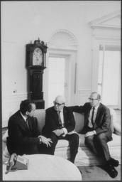 Keywords: President Nixon with AFL-CIO President George Meaney and Secretary of Labor George Schultz - NARA - 194613.tif Scope and content Pictured Richard M Nixon George Meaney George Schultz Subject Labor General notes 194613 Local identifier NLRN-WHPO-0486-01A General Services Administration National Archives and Records Service Office of Presidential Libraries Office of Presidential Papers 01/20/1969 - ca 12/1974 Most Recent <br /> President 1969-1974 Nixon White House Photo Office 1969 - 1974 Most Recent NARA-Author Atkins Oliver F 1916-1977 Photographer 8451334 <br /> Richard Nixon Library NLRN 18001 Yorba Linda Boulevard Yorba Linda CA 92886 1969-03-12 Record group Collection RN-WHPO White House Photo Office Collection Nixon Administration 01/20/1969 - 08/09/1974 Record group ARC 1179 Nixon White House Photographs compiled 01/20/1969 - 08/09/1974 documenting the period 08/08/1968 - 08/09/1974 Series ARC 194277 File unit File unit ARC Variant control numbers NAIL Control Number NLNP-WHPO-MPF-0486 01A yes Other versions NARA-cooperation PD-USGov Photographs by Ollie Atkins |