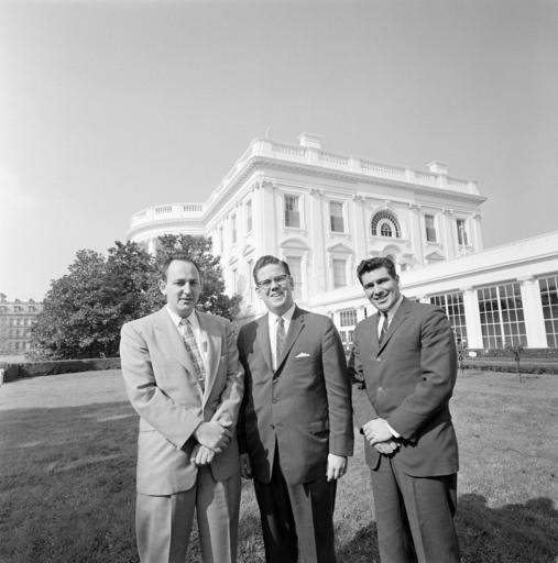 Keywords: u.s. national archives usnationalarchives jfk presidential library jfkpresidentiallibrary blackandwhite people monochrome outdoor black and white Original Caption: P Presidential Assistant John J. McNally with James Stoffel and Visitor from Franklin, Massachusetts We are looking for your help in identifying unknown people in our White House Photographs collection. If you have any information about this photograph, please post a comment, including any relevant sources, for the catalogers at the John F. Kennedy Presidential Library. Thank you! Local Identifier: JFKWHP-ST-240-5-61 Created By: President (1961-1963 : Kennedy). Office of the Naval Aide to the President. (1961 - 1963) From: President (1963-1969 : Johnson). White House Photograph Office. (1963 - 1969) Contact: John F. Kennedy Library (LP-JFK), Columbia Point Boston, MA 02125-3398 Phone: 617-514-1600 Fax: 617-514-1652 Email: kennedy.library@nara.gov Production Dates: 10/24/1961 Scope and Content Note: In this photograph Presidential Assistant John McNally (center) meets with James Stoffel and an unidentified visitor from Franklin, Massachusetts. East Wing Lawn, White House, Washington, D.C. Persistent URL: JFK Library URL: www.jfklibrary.org/Asset-Viewer/Archives/JFKWHP-ST-240-5-... Access Restrictions: Unrestricted Use Restrictions: Unrestricted Original Caption: P Presidential Assistant John J. McNally with James Stoffel and Visitor from Franklin, Massachusetts We are looking for your help in identifying unknown people in our White House Photographs collection. If you have any information about this photograph, please post a comment, including any relevant sources, for the catalogers at the John F. Kennedy Presidential Library. Thank you! Local Identifier: JFKWHP-ST-240-5-61 Created By: President (1961-1963 : Kennedy). Office of the Naval Aide to the President. (1961 - 1963) From: President (1963-1969 : Johnson). White House Photograph Office. (1963 - 1969) Contact: John F. Kennedy Library (LP-JFK), Columbia Point Boston, MA 02125-3398 Phone: 617-514-1600 Fax: 617-514-1652 Email: kennedy.library@nara.gov Production Dates: 10/24/1961 Scope and Content Note: In this photograph Presidential Assistant John McNally (center) meets with James Stoffel and an unidentified visitor from Franklin, Massachusetts. East Wing Lawn, White House, Washington, D.C. Persistent URL: JFK Library URL: www.jfklibrary.org/Asset-Viewer/Archives/JFKWHP-ST-240-5-... Access Restrictions: Unrestricted Use Restrictions: Unrestricted |