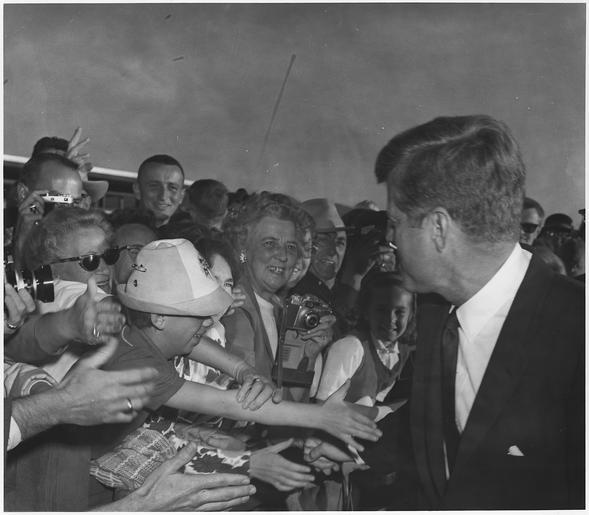 Keywords: Presidential party at the park - NARA - 286008.tif Scope and content Pictures of Kennedy in a group of tourists; Kennedy Udall and McGee shaking hands; Udall observing a crowd; Kennedy and Udall squinting into the sun at the foot of the airplane stairs General notes 286008 Local identifier Department of the Interior National Park Service Midwest Region 06/1962 - NARA's Central Plains Region Kansas City NREA 400 West Pershing Road Kansas City MO 64108 1963 Record group Record Group 79 Records of the National Park Service 1785 - 2006 Record group ARC 408 General Files compiled 1951 - 1964 Series ARC 285987 File unit File unit ARC Variant control numbers NAIL Control Number NRE-79-MR GF -1267 yes Other versions <gallery> File Presidential_party_at_the_park_-_NARA_-_286008 tif tif File Presidential_party_at_the_park_-_NARA_-_286008 jpg jpg </gallery> NARA-cooperation PD-USGov NARA TIF images with categorized JPGs John F Kennedy in 1963 |
