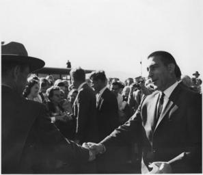 Keywords: Presidential party at the park - NARA - 286006.jpg Scope and content Pictures of Kennedy in a group of tourists; Kennedy Udall and McGee shaking hands; Udall observing a crowd; Kennedy and Udall squinting into the sun at the foot of the airplane stairs General notes 286006 Local identifier Department of the Interior National Park Service Midwest Region 06/1962 - NARA's Central Plains Region Kansas City NREA 400 West Pershing Road Kansas City MO 64108 1963 Record group Record Group 79 Records of the National Park Service 1785 - 2006 Record group ARC 408 General Files compiled 1951 - 1964 Series ARC 285987 File unit File unit ARC Variant control numbers NAIL Control Number NRE-79-MR GF -1265 Other versions <gallery> File Presidential_party_at_the_park_-_NARA_-_286006 tif tif File Presidential_party_at_the_park_-_NARA_-_286006 jpg jpg </gallery> NARA-cooperation PD-USGov Stewart Udall |