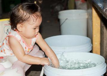 Keywords: pretty baby splash the age of elves water play the child girl curious
