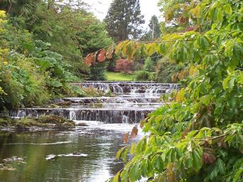 Keywords: pretty scene water little water fall green trees green bank river bank picturesque peaceful scene beautiful
