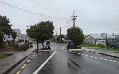 | Keywords: Pretty Tightish Kerb Buildouts Waitakere Bound.jpg A kerb extension / gateway treatment which prevents trucks from going through a residential area to get to the industrial area just to the west of here Seen looking west in Cartwright Road / Netherlands Avenue in Kelston Auckland New Zealand own Own picture 2011-03 Uploader -36 904346 174 661189 Photos taken by Ingolfson 2011 in Auckland Curb extensions Street trees in New Zealand Gateway treatments Keep left road signs in New Zealand Keep right road signs in New Zealand No stopping markings in New Zealand Power lines in New Zealand Streets in Auckland Kelston New Zealand |