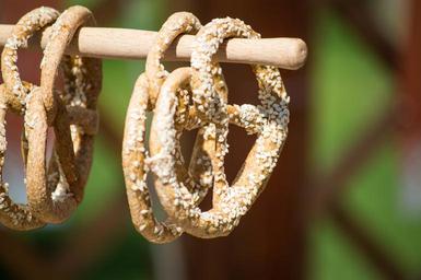 Keywords: pretzel sesame seeds food bread german baked stick bakery
