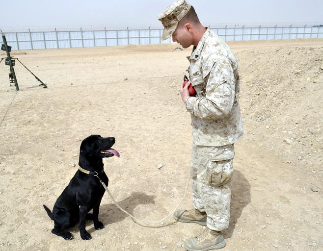 | Keywords: Preventing the boom, Coalition forces IED train 120324-N-LS301-234.jpg  en Crash an improvised explosive device detection dog waits for his reward after finding an improvised explosive device Crash works with his dog handler Cpl David Norris a native of Vacaville Calif an instructor of Reception Staging Onward movement and Integration course at Camp Leatherneck Afghanistan The two of them work on training exercises and physical exercise daily 2012-03-24 Petty Officer 3rd Class Monique LaRouche https //www dvidshub net/image/549168 120324-N-LS301-234 2012-03-27 09 16 CAMP LEATHERNECK AF PD-USGov-Military-Navy Camp Leatherneck Images from DoD uploaded by Fæ |