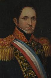| Keywords: Prieto (detalle).jpg  José Joaquín Prieto date 1838 oil on canvas cm 71 60 5 Institution Museo Histórico Nacional Chile Sala La Consolidación del Orden Republicano object history credit line Este óleo fue pintado durante el mandato del president Prieto 1831-1841 y se le puede considerar uno de los primeros retratos presidenciales Fue realizado por artistas ecuatorianos avecinados en Chile; se atribuye al taller de los Palacios de Concepción particularmente al quiteño Manuel Palacios Esta obra sería la fuente iconográfica para el medallón con el retrato de Prieto en lapintura la Virgen del Rosario hoy en la Iglesia de Santo Domingo accession number 000828 Museo Histórico Nacional de Chile PD <gallery>File Prieto jpg File JJPrieto JPG File Prieto detalle2 jpg</gallery> PD-old-100 Paintings in the Museo Histórico Nacional Chile 19th-century portrait paintings of men Portrait paintings of men of Chile Igreja de Nossa Senhora da Glória no Rio de Janeiro Paintings in the Museus Castro Maya Jose Joaquin Prieto |