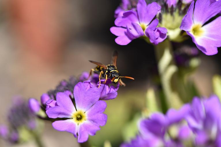 Keywords: primrose drumstick flower purple spring flower early bloomer garden nature field wasp insect animal close