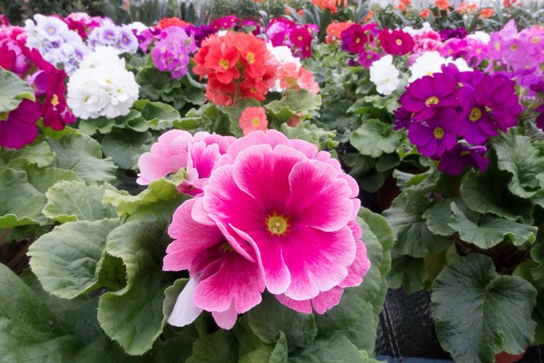 Keywords: primroses primula vulgaris hybrid pink violet salmon white genus primrose primrose varieties flowers spring lenz hybrid greenhouse