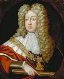 | Keywords: people indoor Prince George of Denmark and Norway, Duke of Cumberland PC Danish: Prins Jørgen, hertug af Cumberland (2 April 1653 – 28 October 1708) was the husband of Queen Anne of Great Britain. Prince George was born Prince Jørgen, in Copenhagen, the third son and sixth child of Frederick III of Denmark and Sophie Amalie of Brunswick-Lüneburg. The young prince's governor from 1661 to 1665 was Otto Grote.[1] In 1674 he was a candidate for the Polish elective throne, backed by King Louis XIV of France.[2] However, George was brought up as a strict Lutheran, and accepting the Polish throne would mean conversion to Roman Catholicism.[1] George was considered a suitable partner for Anne, Denmark being, like Britain, a Protestant country; at that time, it was not considered likely that Anne would become Queen. Anne's uncle Charles II of England had decided that Anne should marry George and her father James, duke of York agreed. Louis XIV was content, but Anne's brother-in-law, William of Orange, was not. George and Anne were married on 28 July 1683, at St. James's Palace, London.[1] Called George in England, the prince was subsequently created an English subject and a Knight of the Garter, and was created Duke of Cumberland, Earl of Kendal and Baron Wokingham.[1] George was given a revenue of ƒ10,000 a year, while the Parliament voted Anne ƒ20,000 a year.[3] Although he was Protesant all his life, he never became a member of the Church of England, which was headed by his wife during her reign - he remained Lutheran even after her accession and he had his own personal chapel.[1] His marriage to Anne was successful, although from 18 pregnancies between 1684 and 1700 only one son, William, Duke of Gloucester, survived infancy, only to die of smallpox in 1700 at the age of 11. As with many other members of the royals and nobility, this poor infant survival rate is fairly strong evidence that Prince George suffered from syphilis. Another theory is that Anne passed haemolytic disease of the newborn to her babies (Rhesus disease). The social and political grouping centred on Prince George and Princess Anne was known as the "Cockpit Circle" after the Cockpit, their London residence (part of the Palace of Whitehall on the site of what is now Downing Street in Westminster). Anne's older sister Mary (later Queen Mary II) had moved to the Netherlands after her marriage to William III of Orange; Protestant opposition to James was therefore increasingly focused on Anne and George instead of Mary, the heiress presumptive. In 1688 the decision of William, Mary, George and Anne to desert the embattled James II was instrumental in whittling away the king's legitimacy and paved the way for the Glorious Revolution of 1689, which was led by William and supported by George, at the nominal head of the Lord High Admiral's Regiment, disbanded the following year. The Holland Regiment took its place as 3rd Regiment of Foot with Prince George as its honorary colonel. William had apparently refused to attend James II's coronation in 1685 because George, as a senior member of a European royal family, would outrank him as elected stadholder of a republic; this mistrust was overcome during the revolution of 1688–89 but dogged relations between George and William during the latter's reign. Some degree of reconciliation was achieved on Queen Mary's sudden and unexpected death from smallpox in 1694; but George did not play a senior role in government until his wife Anne succeeded William in 1702. George was an able administrator and military strategist, and as Lord High Admiral, 1702–08, officially headed the Royal Navy in support of the military activities of Anne's favourite, the Captain-General Lord John Churchill, 1st Duke of Marlborough. On George's death in 1708, Anne was disconsolate. Although she refused initially to entrust the duties of the Lord High Admiral to a commission, she was effectively forced to when she found herself unable to bring herself to sign papers in George's stead. Charles II, Anne's uncle, famously said of Prince George, on the occasion of his marriage to Anne, "I have tried him drunk, and I have tried him sober; and there is nothing in him". George was considered a fine-looking man, being tall and blond. He was neither clever nor learned - he represented a simple man without envy or ambition.[3] He was not seen as one of the most colourful political characters of his day, but he was a skilled strategist and an able administrator, and a loyal and supportive husband to Queen Anne. By all accounts their marriage was a devoted and loving one in spite of their earlier personal tragedies. His official portrait, signed by Sir Godfrey Kneller, is at the National Maritime Museum, Greenwich, London. George I of Greece is also sometimes known as "Prince George of Denmark" (1845–1913), in a confusion of his regnal name, George, and his pre-regnal title, Prince William of Denmark. He was the brother of Alexandra of Denmark, consort of Edward VII. Prince George of Denmark and Norway, Duke of Cumberland PC Danish: Prins Jørgen, hertug af Cumberland (2 April 1653 – 28 October 1708) was the husband of Queen Anne of Great Britain. Prince George was born Prince Jørgen, in Copenhagen, the third son and sixth child of Frederick III of Denmark and Sophie Amalie of Brunswick-Lüneburg. The young prince's governor from 1661 to 1665 was Otto Grote.[1] In 1674 he was a candidate for the Polish elective throne, backed by King Louis XIV of France.[2] However, George was brought up as a strict Lutheran, and accepting the Polish throne would mean conversion to Roman Catholicism.[1] George was considered a suitable partner for Anne, Denmark being, like Britain, a Protestant country; at that time, it was not considered likely that Anne would become Queen. Anne's uncle Charles II of England had decided that Anne should marry George and her father James, duke of York agreed. Louis XIV was content, b