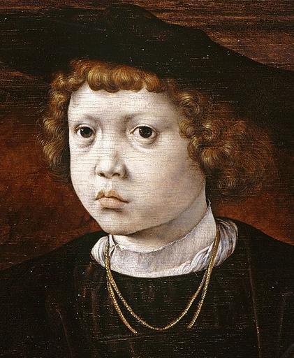 | Keywords: portrait people surreal Wikipedia: John of Denmark (Danish: Hans; 21 February 1518, Copenhagen, Denmark – 11 August 1532, Regensburg, Bavaria) was the eldest child and first of four sons born to the King and Queen of Denmark and Norway, Christian II and Isabella of Austria. Born in Copenhagen, John was named after his paternal grandfather, King John. When John was one year old, his mother gave birth to twin boys, Philip Ferdinand and Maximilian, who both died within a year. He also had two younger sisters, Dorothea, the future Electress of the Palatinate, and Christina, the future Duchess of Milan. King Christian II was deposed in 1523 by his uncle, who took the throne as King Frederick I. During the years of their exile, John and his family led a relatively humble life in the city of Lierre (now Lier, Flanders, Belgium) in the Duchy of Brabant of the Habsburg Netherlands, waiting for the military help of John's maternal uncle, Holy Roman Emperor Charles V. At the beginning of 1532, John's father went to Oslo in an attempt to persuade the Riksråd (National Council of Norway) to recognize John as the rightful Heir to the Throne and to afterwards crown him as the next King of Norway. Meanwhile, the Emperor took John to Regensburg, then a Free Imperial City in Bavaria. He was undoubtedly meant to play a role in Habsburg politics, but died on 11 August at Charles's house in Regensburg. He was buried in St Peter's Abbey in Ghent, also in the Habsburg Netherlands, but his remains were exhumed and transported to St. Canute's Cathedral in Odense, Denmark, in 1883.[1] He is portrayed as gifted and intelligent, capable of running a country. Wikipedia: John of Denmark (Danish: Hans; 21 February 1518, Copenhagen, Denmark – 11 August 1532, Regensburg, Bavaria) was the eldest child and first of four sons born to the King and Queen of Denmark and Norway, Christian II and Isabella of Austria. Born in Copenhagen, John was named after his paternal grandfather, King John. When John was one year old, his mother gave birth to twin boys, Philip Ferdinand and Maximilian, who both died within a year. He also had two younger sisters, Dorothea, the future Electress of the Palatinate, and Christina, the future Duchess of Milan. King Christian II was deposed in 1523 by his uncle, who took the throne as King Frederick I. During the years of their exile, John and his family led a relatively humble life in the city of Lierre (now Lier, Flanders, Belgium) in the Duchy of Brabant of the Habsburg Netherlands, waiting for the military help of John's maternal uncle, Holy Roman Emperor Charles V. At the beginning of 1532, John's father went to Oslo in an attempt to persuade the Riksråd (National Council of Norway) to recognize John as the rightful Heir to the Throne and to afterwards crown him as the next King of Norway. Meanwhile, the Emperor took John to Regensburg, then a Free Imperial City in Bavaria. He was undoubtedly meant to play a role in Habsburg politics, but died on 11 August at Charles's house in Regensburg. He was buried in St Peter's Abbey in Ghent, also in the Habsburg Netherlands, but his remains were exhumed and transported to St. Canute's Cathedral in Odense, Denmark, in 1883.[1] He is portrayed as gifted and intelligent, capable of running a country. |