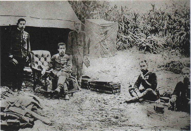 | Keywords: Prince Kitashirakawa Yoshihisa in Gongliao.jpg ja 日 の皇族であった北白 宮能久が台湾の澳底に上陸して野営している様子を撮影したもの 図説台湾の歴史 平凡社 2007年 94頁より転載 もともとの写 は1935年刊行の 北白 宮能久親王御遺跡 に掲載されていた 大日 国軍? 1894 Prince Kitashirakawa Yoshihisa Gongliao District New Taipei PD-Japan-oldphoto |