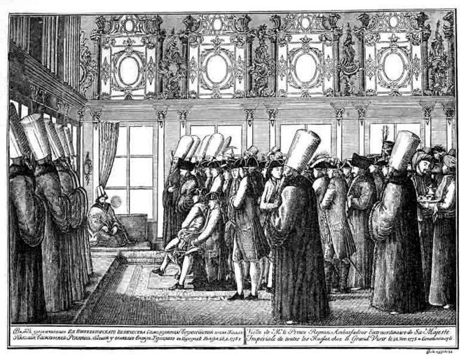 | Keywords: Prince N.Repnin's embassy to Turkey, engraving by I.Bugreev (1775).jpg Аудиенция усского посла князя В Репнина у ту ецкого султана 1775 Г авю а И Буг еева Последняя четве ть XVIII в В 1775 1776 гг В Репнин возглавлял усское посольство в Ту ции Здесь ему п ишлось ешать нелегкую задачу конт оли овать ту ецкое п авительство на п едмет соблюдения статей Кючук-Кайна джийского ми ного догово а 1774 По этому догово у Россия получила те ито ию южной Ук аины до Южного Буга и свободный выход в Че ное мо е к епости Кинбу н Ке чь и Еникале http //historydoc edu ru/catalog asp cat_ob_no 15346 ob_no 14561 1775 Г авю а И Буг еева Nicholas Repnin Files uploaded by Shakko from various sources Ambassadors of the Russian Empire 1775 in Russia 1775 in Turkey PD-old-100 |