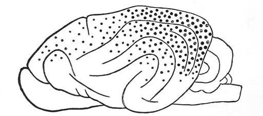 | Keywords: Principles of Psychology (James) v1 p46.png en The brain of the dog visual centre according to Luciani <P>Fig 14 ”Distribution of the Visual Function in the Cortex according to Luciani </P> <P>From the first edition of The Principles of Psychology by William James 1890 vol I page 46 <P> 1890 https //archive org/details/principlesofpsyc001jame Internet Archive scan of the book William James other versions PD-old-100-1923 Principles of Psychology 1890 Dog brain | ||||
