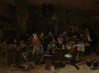 | Keywords: Prinsjesdag Rijksmuseum SK-A-384.jpeg  Artwork creator Jan Steen bedstede hangs a portrait of the prince Above the table hangs a copper chandelier with a orange twig and a bell Prinsjesdag Herberginterieur met een gezelschap die de geboorte van prins Willem III op 14 november 1650 viert Aan tafel zitten mensen te drinken te eten en te lachen Links leest een man iets voor uit een papier Aan de muur boven een bedstee hangt een schilderij met het portret van de prins Boven de tafel een koperen kroon met een oranjetak en een bel between 1660 1679 Ucfirst Oil on panel cm 46 62 5 Institution Rijksmuseum Amsterdam LangSwitch Gallery of Honour Eregalerij place of discovery object history by 1870 Leendert Dupper Wzn 1799-1870 Dordrecht ProvenanceEvent 1870 bequest LangSwitch das the au het Rijksmuseum Amsterdam Amsterdam Leendert Dupper Wzn Dordrecht exhibition history Jan Steen 1958-1959 15 credit line LangSwitch On a piece of paper Op een stuk papier ~ Op de gesonheyt van het nasauss basie in de eene hant het rapier in de andere hant het glasie odt To the health of the Nassau laddy in one hand the rapier sword in the other hand the glass bottom center Salus patriae suprema lex esto The good of the country must be the supreme law top center Wij screuwe als leuwe We roar like lions top center accession number SK-A-384 place of creation Haarlem i18n/or Leiden www rijksmuseum nl http //www rijksmuseum nl Home http //www rijksmuseum nl/collectie/SK-A-384 Info Prince's Day by Jan Steen jpg Amsterdam - Rijksmuseum 1885 - The Gallery of Honour 1st Floor - A company celebrating the birthday of Prince William III 14 November 1650 1650-79 by Jan Steen jpg Version with frame Anonymous SK-A-384 LangSwitch Prince's Day Prinsjesdag 1660-1679 Anonymous 6380 LangSwitch A company celebrating the birthday of Prince William III on 14th November 1660 Een gezelschap de verjaardag van Prins Willem III vierend op 14 november 1660 ~ 1666-1668 Anonymous 20016891 Ländliche Feier anläßlich der Geburt von Prinz Wilhelm 3 am 14 11 1660 Domenicus-van Soest Marleen 2003 Les Chefs-d'oeuvre Guide mus cat Amsterdam Rijksmuseum Amsterdam p 32 i18n/as Le Jour du prince Duinkerken A van and P J G Huincks Dichters om Oranje Oranje-poëzie van Willem de Zwijger tot heden Baarn p 28 Kellen D van de 1871 'De prinsjesdag van Jan Steen' De oude tijd vol III P-page 209 Q17320383 PD-US PD-old-100 Data and photography rights All data and all images made available through the API are either in the public domain or are subject to a CC0 license https //www rijksmuseum nl/en/api/terms-and-conditions-of-use cc-zero Uploaded with GWToolset Prinsjesdag Rijksmuseum SK-A-384 http //www rijksmuseum nl/media/assets/SK-A-384 DEFAULTSORT 1660 Prince's Day Genre paintings by Jan Steen History paintings by Jan Steen Paintings by Jan Steen in the Rijksmuseum Amsterdam Feasts in art Paintings of meals in the Netherlands Tavern interiors in Dutch genre paintings 1660s paintings 1670s paintings in the Netherlands 17th-century oil on panel paintings in the Netherlands 1660s fashion Birthday parties William III of England in paintings Paintings in the Gallery of Honour of the Rijksmuseum Amsterdam Steen Jan 1660 Prince Image overwrites by Jan Arkesteijn for independent review Images uploaded by Fæ Images from the Rijksmuseum |