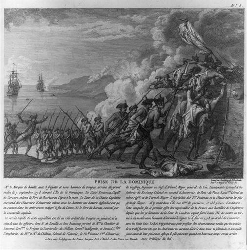 | Keywords: Prise de la Dominique par Bouille 1778.JPEG en Taking the island of Dominica in 1778 by troops of the Marquis de Bouille Engraving published in Paris in 1784 fr Prise de l'Ile de la Dominique en 1778 par les troupes du marquis de Bouillé Gravure publiée à Paris en 1784 LOC-image cph 3a45488 Godefroy François 1784 <gallery> File Prise de la Dominique cph 3b49565 jpg </gallery> Military under Louis XVI of France 1774-1792 1778 Battles of the American Revolutionary War Military of France History of the French Navy PD-old-100 |