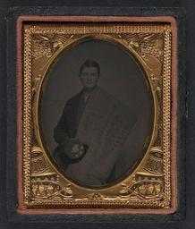| Keywords: library of congress libraryofcongress dc:identifier=http://hdl.loc.gov/loc.pnp/ppmsca.27375 dc:identifier=httphdllocgovlocpnpppmsca27375 xmlns:dc=http://purl.org/dc/elements/1.1/ xmlns:dc=httppurlorgdcelements11 civil war civilwar us civil war uscivilwar united states unitedstates soldier american american civil war americancivilwar uniform military private charles h. osgood charleshosgood private charles h. osgood privatecharleshosgood 16th new hampshire infantry 16thnewhampshireinfantry people photo border picture frame round [Private Charles H. Osgood of Company C, 16th New Hampshire Infantry Regiment with stenciled blanket and forage cap] [between 1861 and 1865] 1 photograph : ninth-plate tintype, hand-colored ; 7.3 x 6.0 cm (case) Notes: Title devised by Library staff. Case: Leather quatrefoil scroll. Additional information in collections file. Gift; Tom Liljenquist; 2010; (DLC/PP-2010:105). Subjects: Osgood, Charles H.,--d. 1926. United States.--Army.--New Hampshire Infantry Regiment, 16th (1862-1863)--People. Soldiers--Union--1860-1870. Military uniforms--Union--1860-1870. Blankets--1860-1870. United States--History--Civil War, 1861-1865--Military personnel--Union. Format: Portrait photographs--1860-1870. Tintypes--Hand-colored--1860-1870. Rights Info: No known restrictions on publication. Repository: Library of Congress, Prints and Photographs Division, Washington, D.C. 20540 USA, hdl.loc.gov/loc.pnp/pp.print Part Of: Ambrotype/Tintype filing series (Library of Congress) (DLC) 2010650518 Liljenquist Family collection (Library of Congress) (DLC) 2010650519 More information about this collection is available at hdl.loc.gov/loc.pnp/pp.lilj Persistent URL: hdl.loc.gov/loc.pnp/ppmsca.27375 Call Number: AMB/TIN no. 2510 [Private Charles H. Osgood of Company C, 16th New Hampshire Infantry Regiment with stenciled blanket and forage cap] [between 1861 and 1865] 1 photograph : ninth-plate tintype, hand-colored ; 7.3 x 6.0 cm (case) Notes: Title devised by Library staff. Case: Leather quatrefoil scroll. Additional information in collections file. Gift; Tom Liljenquist; 2010; (DLC/PP-2010:105). Subjects: Osgood, Charles H.,--d. 1926. United States.--Army.--New Hampshire Infantry Regiment, 16th (1862-1863)--People. Soldiers--Union--1860-1870. Military uniforms--Union--1860-1870. Blankets--1860-1870. United States--History--Civil War, 1861-1865--Military personnel--Union. Format: Portrait photographs--1860-1870. Tintypes--Hand-colored--1860-1870. Rights Info: No known restrictions on publication. Repository: Library of Congress, Prints and Photographs Division, Washington, D.C. 20540 USA, hdl.loc.gov/loc.pnp/pp.print Part Of: Ambrotype/Tintype filing series (Library of Congress) (DLC) 2010650518 Liljenquist Family collection (Library of Congress) (DLC) 2010650519 More information about this collection is available at hdl.loc.gov/loc.pnp/pp.lilj Persistent URL: hdl.loc.gov/loc.pnp/ppmsca.27375 Call Number: AMB/TIN no. 2510 |
