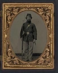 Keywords: library of congress libraryofcongress dc:identifier=http://hdl.loc.gov/loc.pnp/ppmsca.27204 dc:identifier=httphdllocgovlocpnpppmsca27204 xmlns:dc=http://purl.org/dc/elements/1.1/ xmlns:dc=httppurlorgdcelements11 people photo border picture frame [Private George H. Bannister of Company H, 13th New Hampshire Infantry Regiment in sack coat and forage cap with holstered bayonet, cartridge pouch, and bayoneted musket] [between 1861 and 1865] 1 photograph : quarter-plate tintype, hand-colored ; 12.1 x 9.6 cm (case) Notes: Title devised by Library staff. Case: Berg, no. 3-19. Tintype of Mary Bannister, wife of George, found in case and processed as AMB/TIN no. 2351-A. Gift; Tom Liljenquist; 2010; (DLC/PP-2010:105). Subjects: Bannister, George H.,--d. 1864. United States.--Army.--New Hampshire Infantry Regiment, 13th (1862-1865)--People. Soldiers--Union--1860-1870. Military uniforms--Union--1860-1870. Rifles--1860-1870. Bayonets--1860-1870. United States--History--Civil War, 1861-1865--Military personnel--Union. Format: Portrait photographs--1860-1870. Tintypes--Hand-colored--1860-1870. Rights Info: No known restrictions on publication. Repository: Library of Congress, Prints and Photographs Division, Washington, D.C. 20540 USA, hdl.loc.gov/loc.pnp/pp.print Part Of: Ambrotype/Tintype filing series (Library of Congress) (DLC) 2010650518 Liljenquist Family collection (Library of Congress) (DLC) 2010650519 More information about this collection is available at hdl.loc.gov/loc.pnp/pp.lilj Persistent URL: hdl.loc.gov/loc.pnp/ppmsca.27204 Call Number: AMB/TIN no. 2351 [Private George H. Bannister of Company H, 13th New Hampshire Infantry Regiment in sack coat and forage cap with holstered bayonet, cartridge pouch, and bayoneted musket] [between 1861 and 1865] 1 photograph : quarter-plate tintype, hand-colored ; 12.1 x 9.6 cm (case) Notes: Title devised by Library staff. Case: Berg, no. 3-19. Tintype of Mary Bannister, wife of George, found in case and processed as AMB/TIN no. 2351-A. Gift; Tom Liljenquist; 2010; (DLC/PP-2010:105). Subjects: Bannister, George H.,--d. 1864. United States.--Army.--New Hampshire Infantry Regiment, 13th (1862-1865)--People. Soldiers--Union--1860-1870. Military uniforms--Union--1860-1870. Rifles--1860-1870. Bayonets--1860-1870. United States--History--Civil War, 1861-1865--Military personnel--Union. Format: Portrait photographs--1860-1870. Tintypes--Hand-colored--1860-1870. Rights Info: No known restrictions on publication. Repository: Library of Congress, Prints and Photographs Division, Washington, D.C. 20540 USA, hdl.loc.gov/loc.pnp/pp.print Part Of: Ambrotype/Tintype filing series (Library of Congress) (DLC) 2010650518 Liljenquist Family collection (Library of Congress) (DLC) 2010650519 More information about this collection is available at hdl.loc.gov/loc.pnp/pp.lilj Persistent URL: hdl.loc.gov/loc.pnp/ppmsca.27204 Call Number: AMB/TIN no. 2351