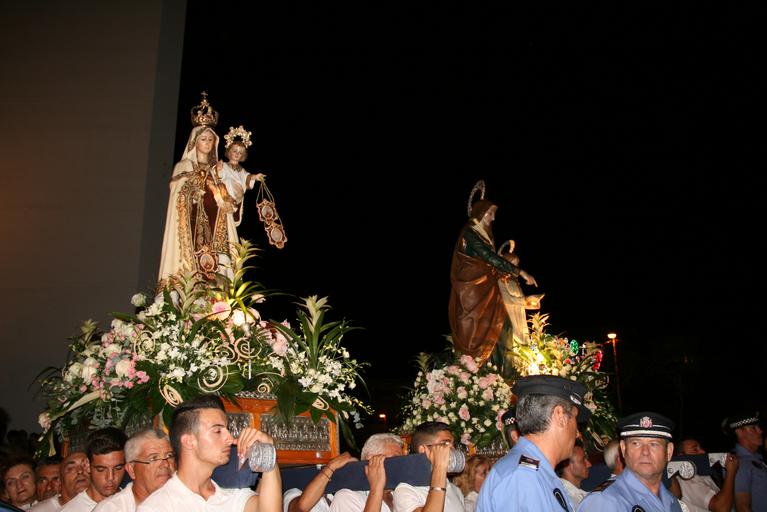 | Keywords: roquetas de mar roquetasdemar fiestas roquetas de mar fiestasroquetasdemar fiestas santa ana roquetas de mar fiestassantaanaroquetasdemar fiestas el puerto roquetas de mar fiestaselpuertoroquetasdemar procesión santa ana procesiónsantaana El 26 de julio volvió a ser un día grande para El Puerto de Roquetas de Mar. La procesión en honor a la Virgen del Carmen y Santa Ana reunió a miles de personas que arroparon a las imágenes en el recorrido por las calles del barrio. Los vecinos y visitantes vivieron la procesión con intensidad y exaltación, y los vítores a la Virgen y Santa Ana fueron constantes. Por la mañana se celebraba la Santa Misa solemne en el tercer y último día del Triduo. Por la tarde, pasadas las 18 horas, comenzaba la procesión. Las imágenes estuvieron acompañadas por la música de la Banda de Música de Loja y de la Unión Musical Roquetas de Mar. Desde la Parroquia de Santa Ana se llegaba a la Calle El Faro y después hasta la explanada del Faro de Roquetas de Mar. En este punto se llevó a cabo una de las principales tradiciones de estas fiestas, el lavado de cara a Santa Ana. Gabriel Amat, alcalde de Roquetas de Mar, hizo el lavado, así como Marta López, que fue designada en el sorteo. Juani Cruz, también por sorteo, fue la persona que portó el agua para el lavado. Después la procesión continuó en dirección al muelle pesquero bordeando el Castillo de Santa Ana para iniciar la procesión marítima hacia Aguadulce. La imagen de la Virgen del Carmen procesionó en el barco Salvador El Fortuna, mientras que la de Santa Ana lo hizo en el Rompemares. Antes de llegar a Aguadulce se lanzaron cohetes en honor a la Virgen y a Santa Ana. En el Puerto Deportivo de Aguadulce se rezó a las imágenes, y se partió de nuevo hacia el Puerto de Roquetas de Mar. En alta mar también se lanzaron flores en memoria de los pescadores. Pasadas las 21 horas la procesión volvía a tierra y recorría la zona del ferial en dirección hacia la Iglesia del Puerto. Una vez en este punto, y con la presencia de miles de personas en la plaza, se lanzaba un espectacular castillo de fuegos artificiales con el que se ponía fin a la procesión. Antes de regresar las imágenes al templo se interpretó el himno de España que sirvió como despedida. El 26 de julio volvió a ser un día grande para El Puerto de Roquetas de Mar. La procesión en honor a la Virgen del Carmen y Santa Ana reunió a miles de personas que arroparon a las imágenes en el recorrido por las calles del barrio. Los vecinos y visitantes vivieron la procesión con intensidad y exaltación, y los vítores a la Virgen y Santa Ana fueron constantes. Por la mañana se celebraba la Santa Misa solemne en el tercer y último día del Triduo. Por la tarde, pasadas las 18 horas, comenzaba la procesión. Las imágenes estuvieron acompañadas por la música de la Banda de Música de Loja y de la Unión Musical Roquetas de Mar. Desde la Parroquia de Santa Ana se llegaba a la Calle El Faro y después hasta la explanada del Faro de Roquetas de Mar. En este punto se llevó a cabo una de las principales tradiciones de estas fiestas, el lavado de cara a Santa Ana. Gabriel Amat, alcalde de Roquetas de Mar, hizo el lavado, así como Marta López, que fue designada en el sorteo. Juani Cruz, también por sorteo, fue la persona que portó el agua para el lavado. Después la procesión continuó en dirección al muelle pesquero bordeando el Castillo de Santa Ana para iniciar la procesión marítima hacia Aguadulce. La imagen de la Virgen del Carmen procesionó en el barco Salvador El Fortuna, mientras que la de Santa Ana lo hizo en el Rompemares. Antes de llegar a Aguadulce se lanzaron cohetes en honor a la Virgen y a Santa Ana. En el Puerto Deportivo de Aguadulce se rezó a las imágenes, y se partió de nuevo hacia el Puerto de Roquetas de Mar. En alta mar también se lanzaron flores en memoria de los pescadores. Pasadas las 21 horas la procesión volvía a tierra y recorría la zona del ferial en dirección hacia la Iglesia del Puerto. Una vez en este punto, y con la presencia de miles de personas en la plaza, se lanzaba un espectacular castillo de fuegos artificiales con el que se ponía fin a la procesión. Antes de regresar las imágenes al templo se interpretó el himno de España que sirvió como despedida. |