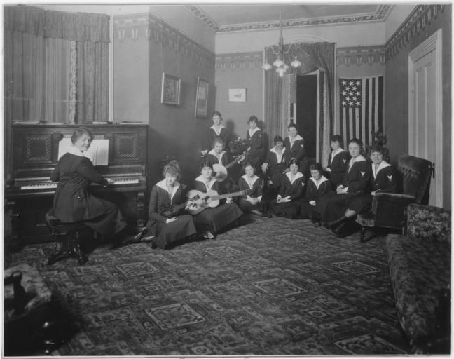 | Keywords: Prodecessors of Waves, Yeomanettes' "Happy Hour" during World WarI. Music played an important role in the life of... - NARA - 296898.jpg Scope and content General notes 296898 Local identifier Department of Defense Department of the Navy Mare Island Naval Shipyard Office of the Commander Office of the Shipyard Historian 1976 - ca 1996 NARA's Pacific Region San Bruno NRHAS 1000 Commodore Drive San Bruno CA 94066-2350 other date ~ 1918 Record group Record Group 181 Records of Naval Districts and Shore Establishments 1784 - 2000 Record group ARC 510 Subject Files compiled 1976 - 1996 documenting the period ca 1854 - ca 1996 Series ARC 296821 File unit Yeomanettes 1917 - 1919 File unit ARC 296896 Variant control numbers NAIL Control Number NRHS-181-MINSYHISTSUBJ-YEOMANETTES-YEO2 Other versions <gallery> File Prodecessors_of_Waves _Yeomanettes'_ Happy_Hour _during_World_WarI _Music_played_an_important_role_in_the_life_of _-_NARA_-_296898 tif tif File Prodecessors_of_Waves _Yeomanettes'_ Happy_Hour _during_World_WarI _Music_played_an_important_role_in_the_life_of _-_NARA_-_296898 jpg jpg </gallery> NARA-cooperation PD-USGov Yeoman F United States Navy 1918 in California Music in 1918 Musician United States Navy Black and white photographs of musicians Female musicians with musical instruments Mare Island Naval Shipyard Black and white photographs of California |
