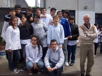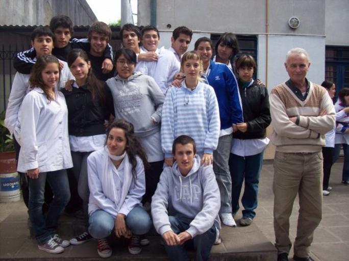 Keywords: Profesor y alumnado.jpg es Es una foto de un alumnado de Argentina con guardapolvo blanco junto al profesor de lengua Santiago Grasso own Gelpgim22 2009-06 Trabajo propio Educators