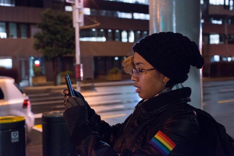 View Original:Profile_of_Key_looking_at_phone_in_downtown_Wellington.jpg (7360x4912)