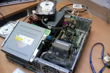 Keywords: busted open bustedopen cloning drives cloningdrives computer hp project 365 project365 system unit systemunit printed circuit board electronics indoor I stopped off on my way home tonight to help my brother with some work he's doing at one of our partner Special Schools. They've been having all kinds of trouble with technical support, and so he's stepped in and he's been working on new stuff for them. One of the jobs that needed doing was new configurations of the workstations in the ICT suite. The easiest way to do this is to clone the entire hard drive. There's lots of clever ways to do this through the network, but these machines had really weird NVidia network cards and it was easier and quicker to just rip the hard drives out and copy them locally in a machine. That's what I'm doing in the photo. This is an HP machine that I'm using to copy the drives from the Fujitsu Seimens machines. The whole hard drives were copying over in just over 5 minutes. A boring photo, but then it was a boring job. I stopped off on my way home tonight to help my brother with some work he's doing at one of our partner Special Schools. They've been having all kinds of trouble with technical support, and so he's stepped in and he's been working on new stuff for them. One of the jobs that needed doing was new configurations of the workstations in the ICT suite. The easiest way to do this is to clone the entire hard drive. There's lots of clever ways to do this through the network, but these machines had really weird NVidia network cards and it was easier and quicker to just rip the hard drives out and copy them locally in a machine. That's what I'm doing in the photo. This is an HP machine that I'm using to copy the drives from the Fujitsu Seimens machines. The whole hard drives were copying over in just over 5 minutes. A boring photo, but then it was a boring job. |