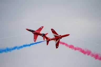 | Keywords: air show airshow blackpool high speed opposing pass highspeedopposingpass lingy does his thingy lingydoeshisthingy red arrows redarrows synchro pair synchropair baz Today was Blackpool Air Show, and as the Reds were displaying Laura just had to be there!   Actually, it wasn't at all bad, and for a free show you had no cause for complaint at all.  This show was unsual as I got a whole pile of photos of the Reds that I was happy with, and they're normally not much good. Although this probably isn't the most attractive of the bunch, it's the one I've always tried to get and never managed.  This is the synchro pair doing opposing passes, basically flying towards each other at a closing speed of about 800mph and making it look as much as humanly possible like they're going to collide without actually hitting each other.  It's ALWAYS terrifying to watch, and the fact that one of these planes is fairly sharp and the other a little blurry at a 1/1250 shutter speed kind of tells you just how fast these things are hooning along.  I can't claim any credit for the timing, as it's impossible to time it. You click like mad and hope for the best, and if you get a perfect shot then you're either damn lucky or you've taken thousands.  Yes, I'm entirely happy with this one. :) Today was Blackpool Air Show, and as the Reds were displaying Laura just had to be there!   Actually, it wasn't at all bad, and for a free show you had no cause for complaint at all.  This show was unsual as I got a whole pile of photos of the Reds that I was happy with, and they're normally not much good. Although this probably isn't the most attractive of the bunch, it's the one I've always tried to get and never managed.  This is the synchro pair doing opposing passes, basically flying towards each other at a closing speed of about 800mph and making it look as much as humanly possible like they're going to collide without actually hitting each other.  It's ALWAYS terrifying to watch, and the fact that one of these planes is fairly sharp and the other a little blurry at a 1/1250 shutter speed kind of tells you just how fast these things are hooning along.  I can't claim any credit for the timing, as it's impossible to time it. You click like mad and hope for the best, and if you get a perfect shot then you're either damn lucky or you've taken thousands.  Yes, I'm entirely happy with this one. :)  |