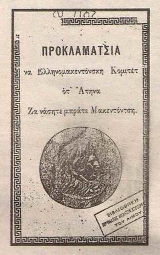 Keywords: Proklamatsia na Elinomakedonskia komitet.jpg П окламация на Елиномакедонския комитет в Атина написана на бълга ски език с г ъцки букви Заглавие П окламация на Елиномакедонски комитет от Атина За нашите б ате македонци own scanned 1904 - 1908 Ellinomacedonian Comittee PD-old Greek Struggle for Macedonia Books from Greece Books in Bulgarian Greek writing |