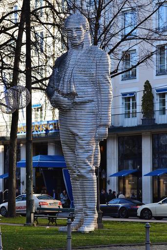 Keywords: promenade place munich man sculpture artwork metal bavaria metal art