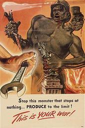 Keywords: PropagandaNaziJapaneseMonster.gif STOP THIS MONSTER THAT STOPS AT NOTHING PRODUCE TO THE LIMIT THIS IS YOUR WAR 1941 - 1945 Creator Office for Emergency Management Office of War Information Domestic Operations Branch Bureau of Special Services 03/09/1943 - 08/31/1945 Propaganda PD-USGov nazi symbol World War II anti-Japanese propaganda posters from the United States Nazi-Japanese-Monster Caricatures of Hideki Tōjō US-Propaganda-Plakat Caricatures of Adolf Hitler US-Propaganda-Plakat Drawings of Adolf Hitler US-Propaganda-Plakat Giants mythology US-Propaganda-Plakat Stahlhelm of World War II in art World War II home front in the United States Propaganda-Plakat Double heads US-Propaganda-Plakat World War II anti-German propaganda posters from the United States US-Plakat Statue of Liberty in art Nazi-Japanese-Monster Hitler in Allied propaganda US-Plakat |