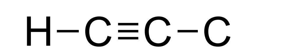 Keywords: Propynylidyne.svg use TeX \mathrm H - C \equiv C - C needs to be scaled geometry of triple bond in TeX not exact Chemical structure of propynylidyne Own 2010-12-13 Edgar181 Carbenes Alkynes