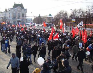 View Original:Protestors march on the Minin & Pozharsky Square, Nizhny Novgorod, 4 February.jpg (3033x2388)