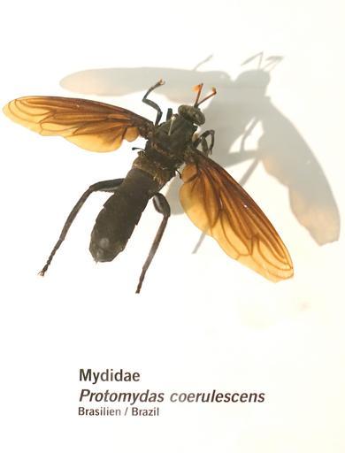 Keywords: Protomydas coerulescens - Museum fur Naturkunde, Berlin - DSC00170.JPG en Exhibit in Museum für Naturkunde Berlin Germany Photography was permitted in the museum without restriction 2014-11-09 09 22 24 own Daderot other versions cc-zero Uploaded with UploadWizard Insects in Museum für Naturkunde Berlin Mydas coerulescens |