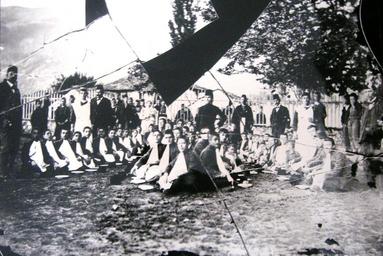 | Keywords: Prvomajska proslava vo Janina, 1898.jpg mk Ученици од Романската гимназија со својот п офесо Јанаки анаки во с едина на п ославата на еѓуна одниот ден на т удот снимени во дво от на гимназијата Оштетена 1 мај 1898 Јанина en Students of Romanian high school with their professor Janaki Manaki in the center a celebration of International Workers' Day filmed in the courtyard of the high school Damaged May 1 1898 Ioannina DARM archive 1898-05-01 The State Archives of the Republic of Macedonia DARM Bitola Department Creator Yanaki and Milton Manaki other versions Custom license marker 2016 08 04 PD-Macedonia Wikipedian in Residence at DARM Photographs by Manaki Brothers Ioannina in the 19th century |