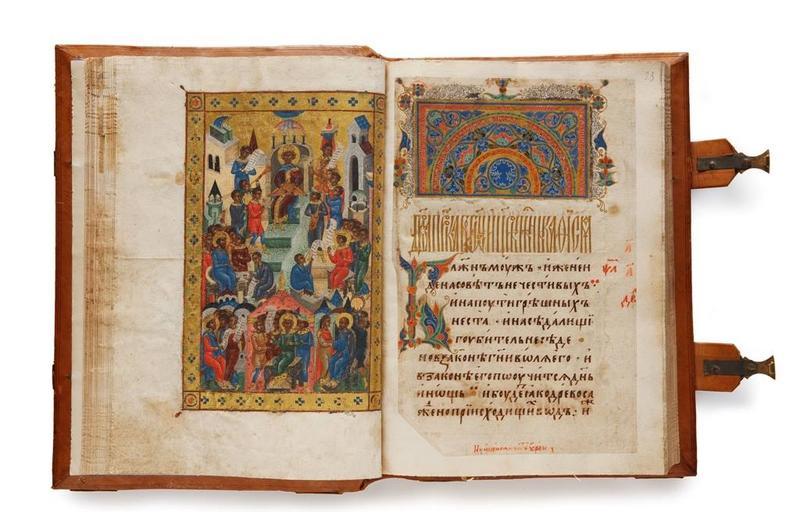Keywords: Psaltyr s vossledovaniem (16th c., GIM).jpg «Псалти ь с восследованием» Рукописная книга «Псалти ь с восследованием» дати уется се единой XVI века Она написана на западноев опейской бумаге изысканным каллиг афическим полууставом ук ашена заставками и инициалами оскошного «неовизантийского» о намента на золотом фоне В начале Псалти и миниатю а с надписью белилами на золотом фоне «Давид ца ь состави Псалти ь с лики богодухновенными писмены со многими тво цы» Иконог афия миниатю ы уникальна помимо ца я Давида и т адиционных «ликов» хо ов музыкантов и певцов исполняющих псалмы здесь в золотых нимбах изоб ажены и д угие ца ственные авто ы песнопений входящих в состав Псалти и Разнооб азие фо м а хитекту ных соо ужений воссоздает сказочный об аз священного «г ада Ие усалима» https //www facebook com/historyRF/photos/pb 126013167434606 -2207520000 1393318712 /644813548887896/ type 3 theater 16 c anonymous PD-Art Manuscripts in Moscow State Historical Museum Files uploaded by Shakko from various sources 16th-century illuminated manuscripts |